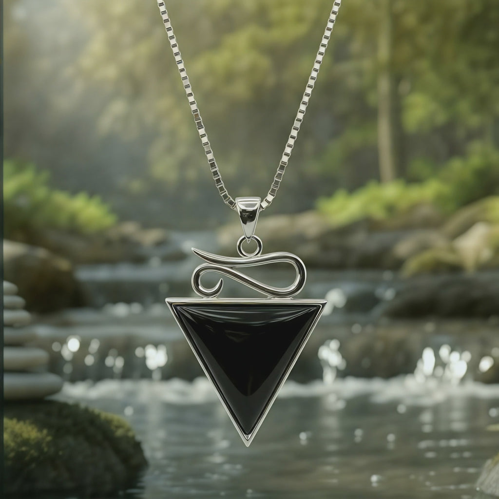 Black Onyx & Silver Trinity Necklace — A Talisman of Strength, Grounding & Inner Power. This sacred design channels the stabilizing energy of the Earth, helping anchor your spirit, calm the mind, and fortify emotional resilience.