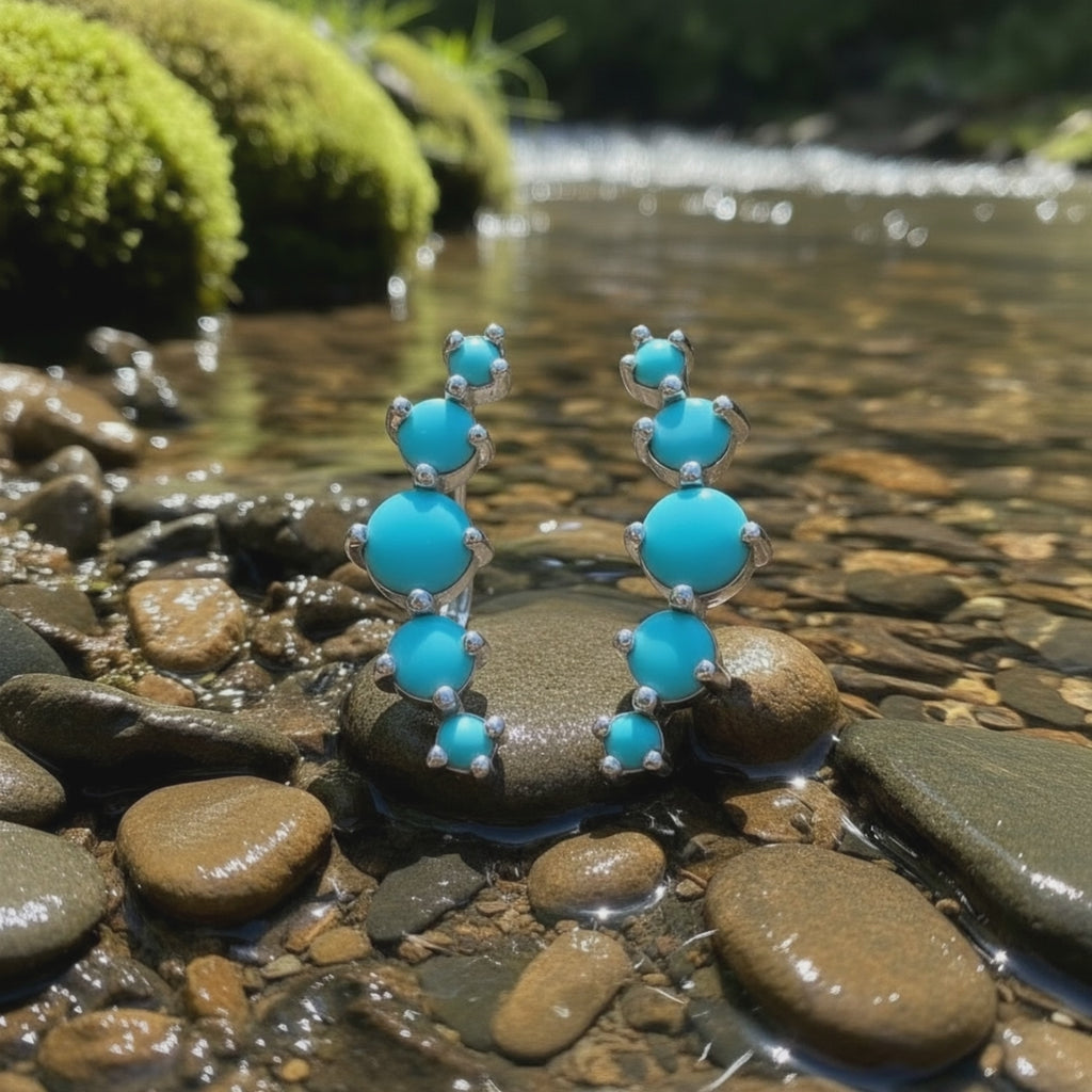Blue Howlite & Silver Cuff Earrings are a Talisman of Calm, Clarity & Graceful Expression. Sleek sterling silver climbers trace the ear while sky-hued Blue Howlite accents add a serene, modern glow.