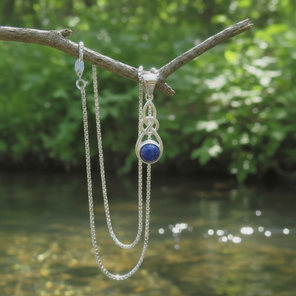 Lapis Lazuli is a Stone of Truth, Wisdom & Eternal Connection. Each piece pairs celestial blue Lapis Lazuli with a Celtic-inspired Infinity Knot—an unbroken symbol of unity, protection, and the continuous flow of spirit.